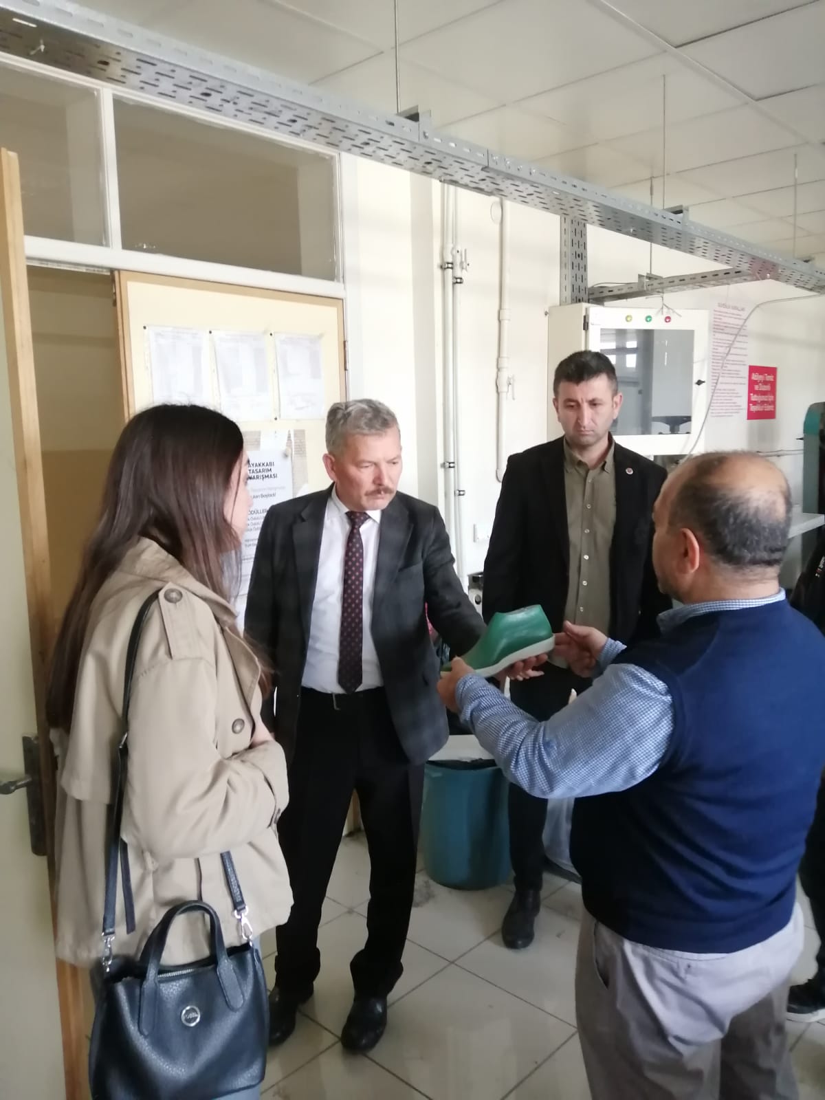 Bolu Sosyal Yardımlaşma ve Dayanışma Vakfı Müdürü Basri Bozan, Gerede Ticaret ve Sanayi Odası Genel Sekreter Turhan ANAÇ ve beraberlerindeki heyet 07/11/2025 Cuma günü Gerede Meslek Yüksekokulumuz Ayakkabı Tasarımı ve Üretimi Programı atölyelerini ziyaret ederek Ayakkabı üretimi hakkında bölüm hocaları ile istişarelerde bulundular.