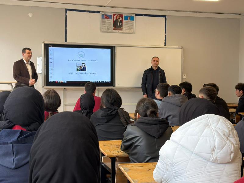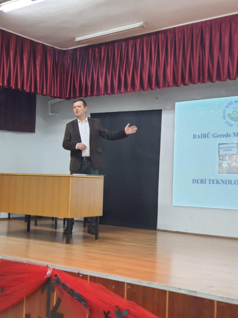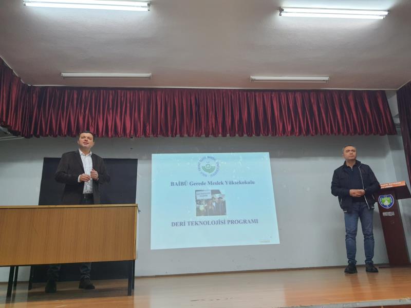 Deri Teknolojisi Programı öğretim elemanları Dr. Öğr. Üyesi Kemal KILINÇ ve Öğr. Gör. Mehmet Ali ESER, Gerede'de üniversite sınavına hazırlanan 12. sınıf öğrencileriyle bir araya gelerek programımızın ve deri sektörünün tanıtımını gerçekleştirdi. Geleceğin meslek profesyonellerini yetiştiren programımız, tanıtım faaliyetleri kapsamında Gerede Anadolu Lisesi, Gerede Hacı Sadık Öztosun Anadolu Lisesi ve Gerede Anadolu İmam Hatip Lisesi'ni ziyaret etti.